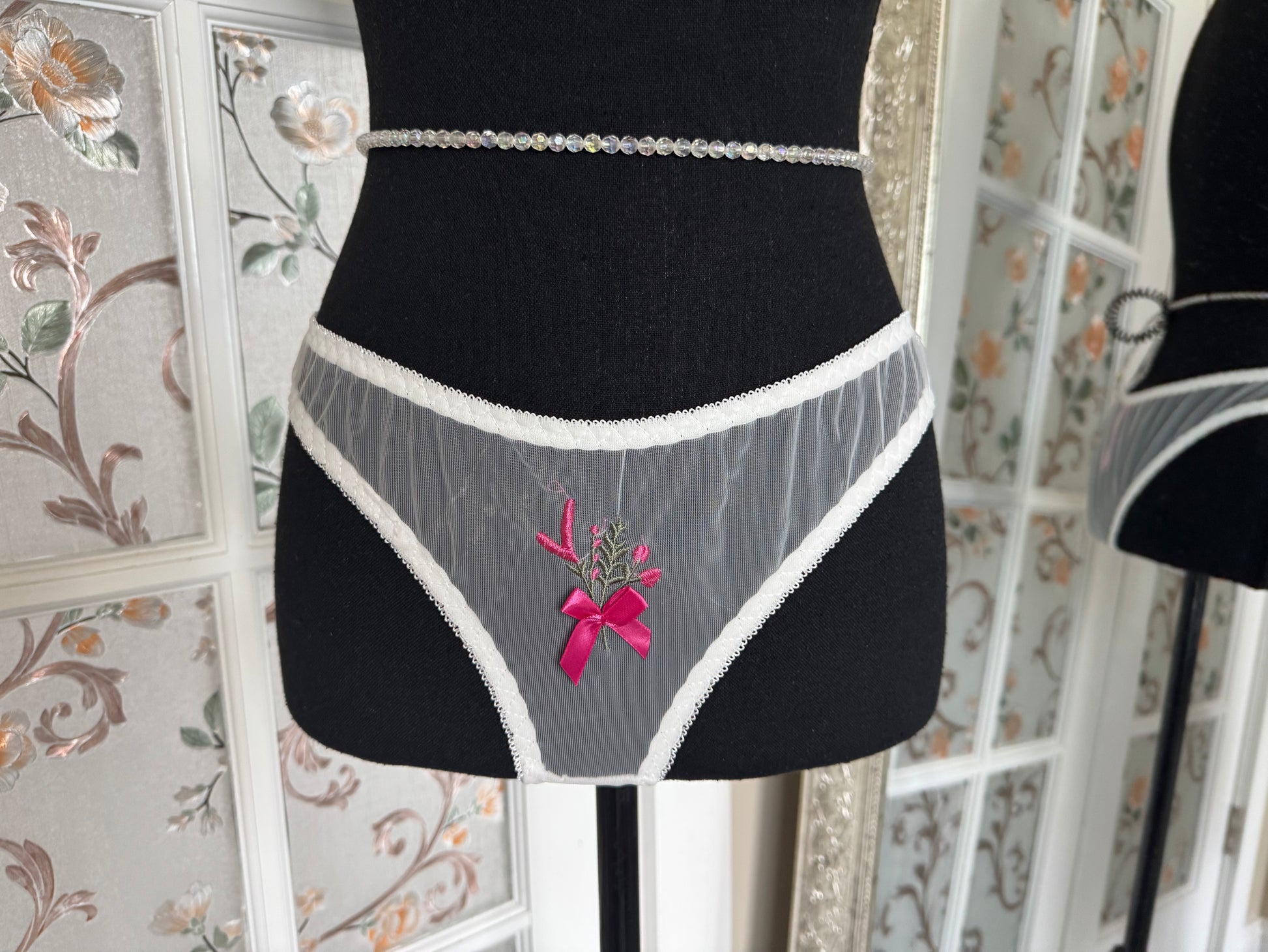 The Flower Girl Mesh Thong is an ode to delicate beauty, featuring a whisper-light mesh that feels like a second skin. Its centerpiece is a stunning, meticulously stitched floral emblem—a symbol of secret beauty and blooming desire. With clean lines and a breathtakingly transparent silhouette, this is the ultimate foundation for feeling irresistibly beautiful from the moment you slip it on.