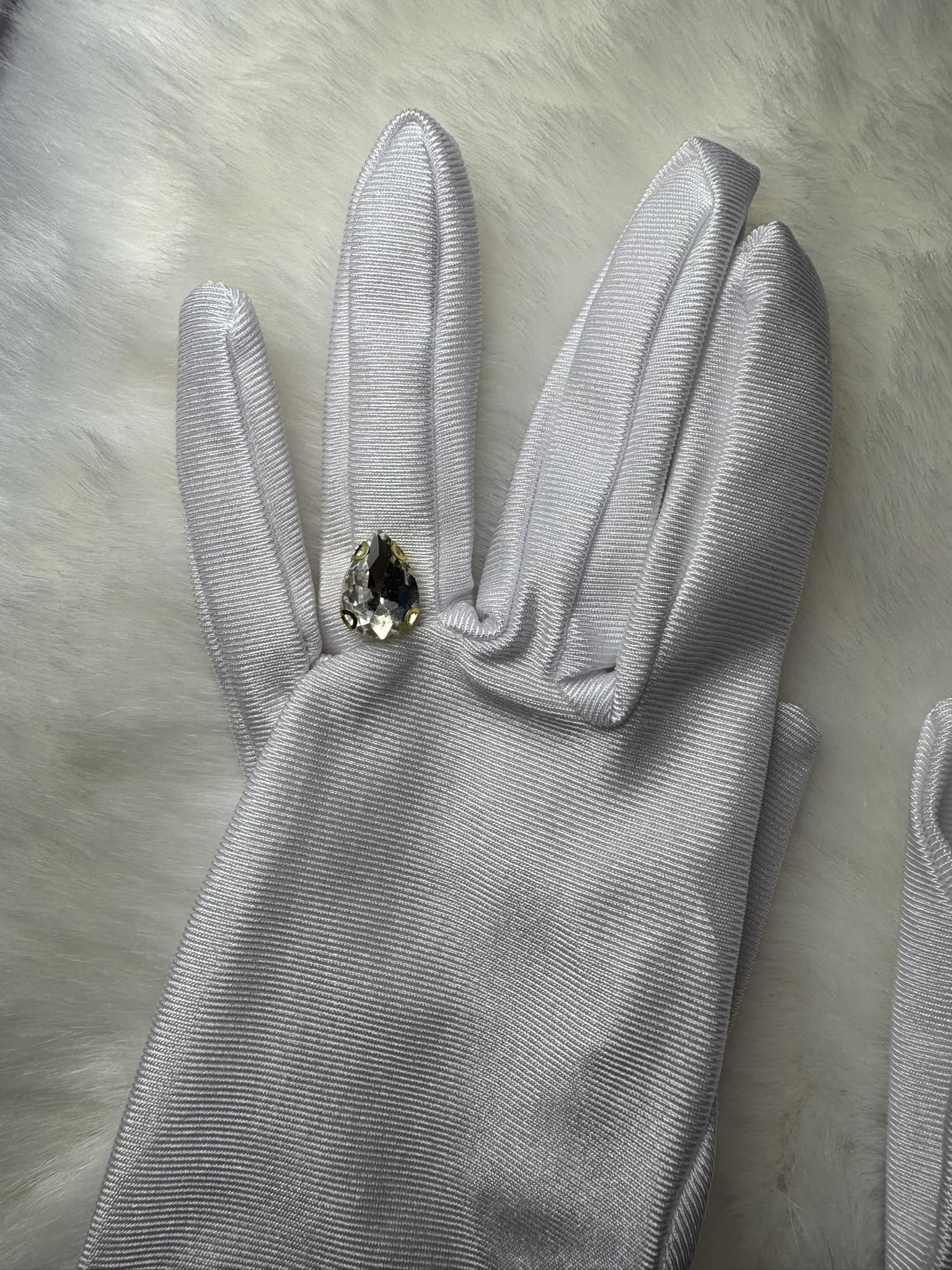 Gorgeous white gloves with faux pear diamond. Perfect for bachelorette parties!