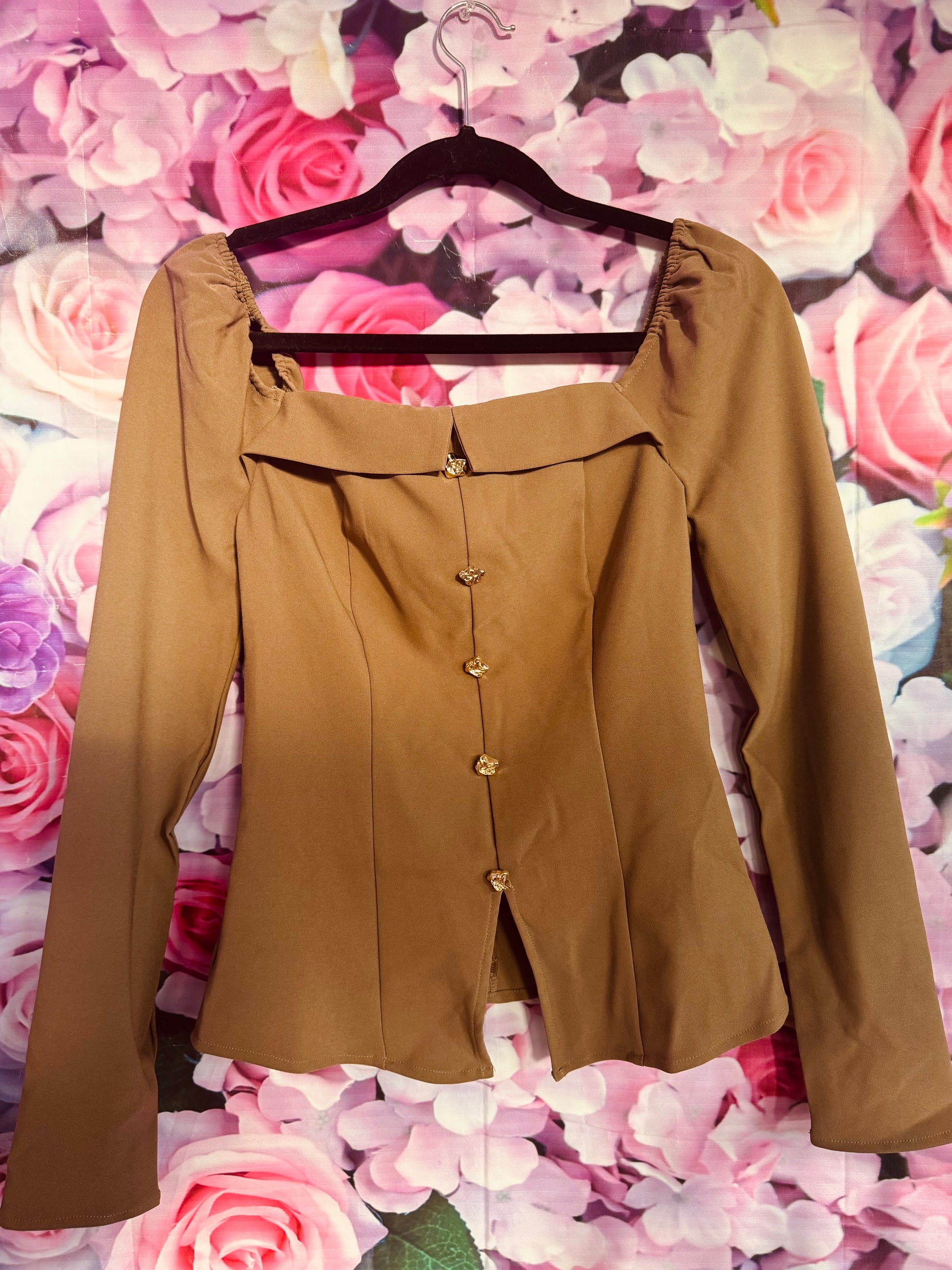 Beautiful brown top and pant set. Perfect for the office or an event.